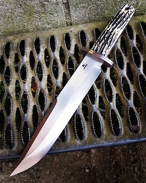 A one-of-a-kind Bowie, made to reflect old west styling, but with the best of modern standards. Large enough to do serious work, but light enough to be fast and not the least bit unweildly. This is a knife that was originally made for my personal collection and is unlikely to be recreated.